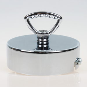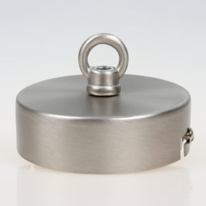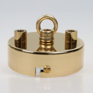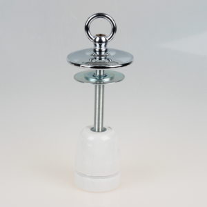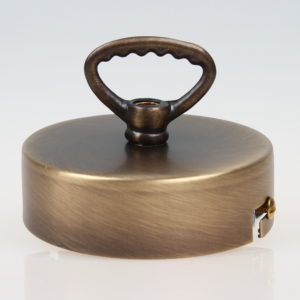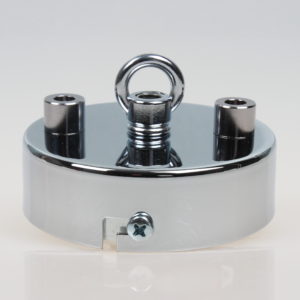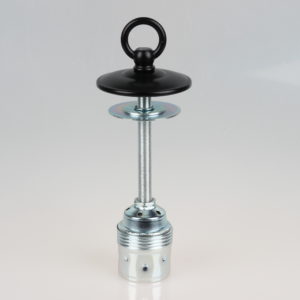 Baldachine aus Metall mit Ringnippel für Kettenaufhängung sind ideal zum Abhängen von schweren Lampen sowie alte Industrie-Leuchten im Vintage Look. Eine passende Lampenkette finden Sie in verschiedenen Größen mit unterschiedlicher Zuglast in unserem Online-Shop unter der Kategorie Leuchtenteile. Hier ist zu beachten, dass immer eine feste Verbindung mit geschlossenen Ösen vorhanden sein sollte. Die Verwendung von S-Haken empfehlen wir aus Sicherheitsgründen nicht, da durch ein eventuelles Missgeschick die schwere Lampe aus dem offenen S-Haken herausrutschen kann. Dadurch würde die volle Zuglast der schweren Lampe das Stromkabel aus dem Baldachin reißen, einen elektrischen Kurzschluss verursachen und somit Menschenleben gefährden. Die Ösen der Lampenkette können Sie beliebig mit unserer Kettenzange (2015-1928) öffnen und schließen. Lampen-Ketten bieten wir in den Oberfächen Farben schwarz, weiß, messing, antik fume, vernickelt, kupfer, alt kupfer, tiffany und edelstahloptik an.
