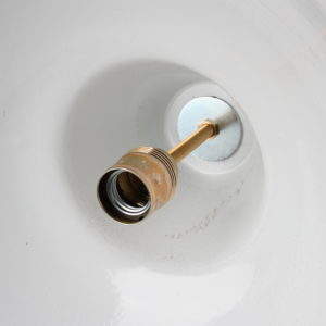 Damit wir die richtige Position für das spätere Leuchtmittel bestimmen können muss die Höhe des Lampenhalses ausgemessen werden. In unserem Beispiel sind es genau 10cm, sodass wir jetzt die Länge des Gewinderohres zur Befestigung der E27 Lampenfassung kennen.