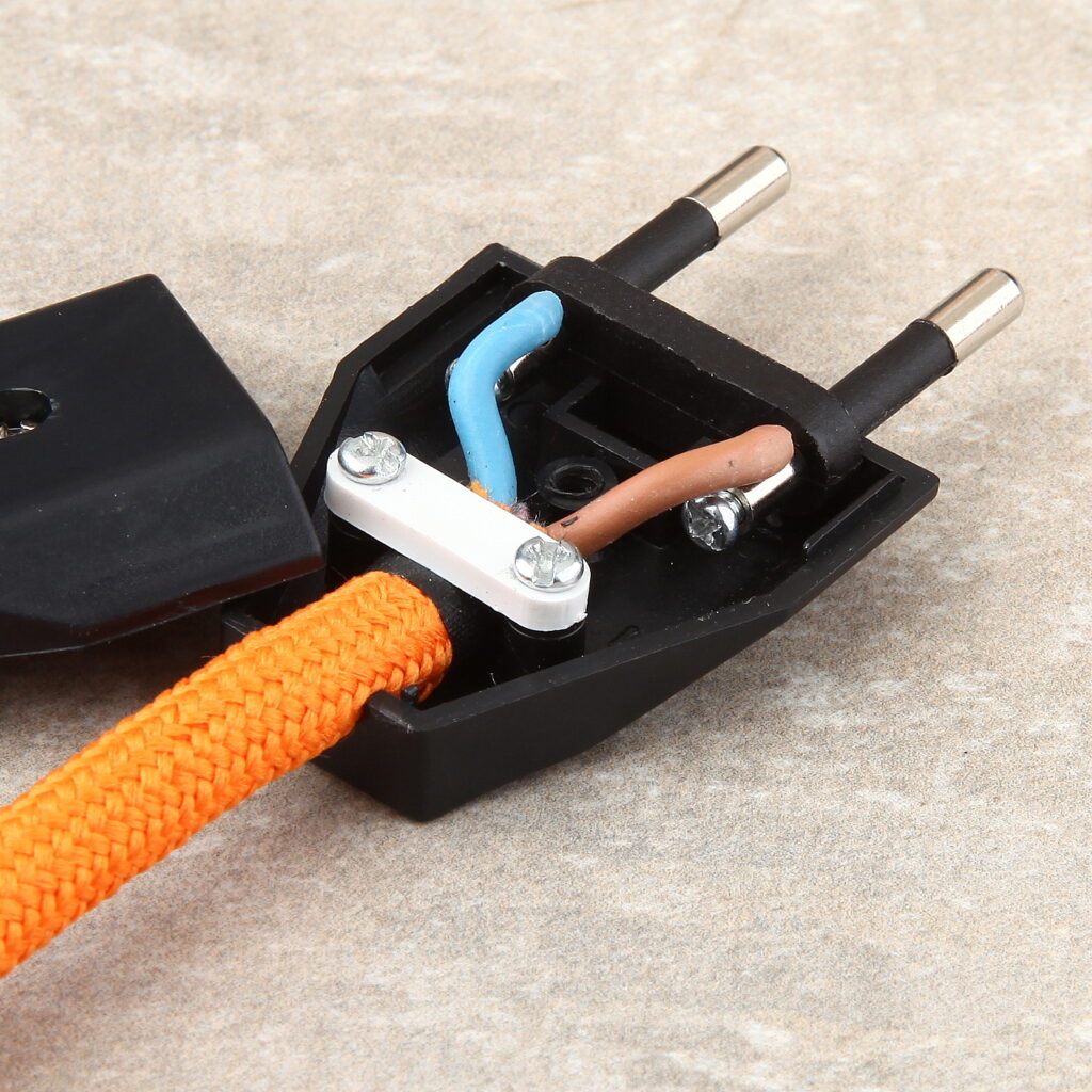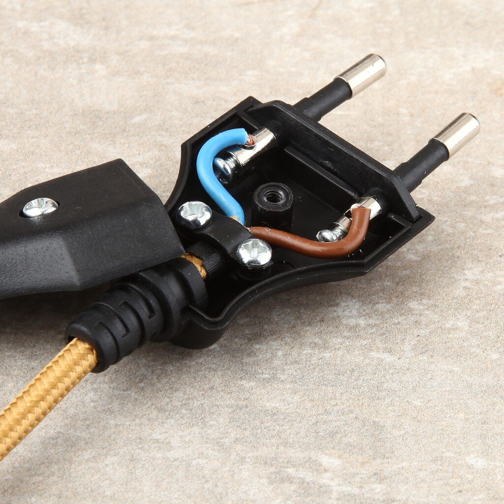 Hier werden Euro-Flachstecker, PVC- oder Textilkabel korrekt montiert, geprüft und auf Wunsch mit Steckerprüfung (Durchgang & Isolationswiderstand) versehen.