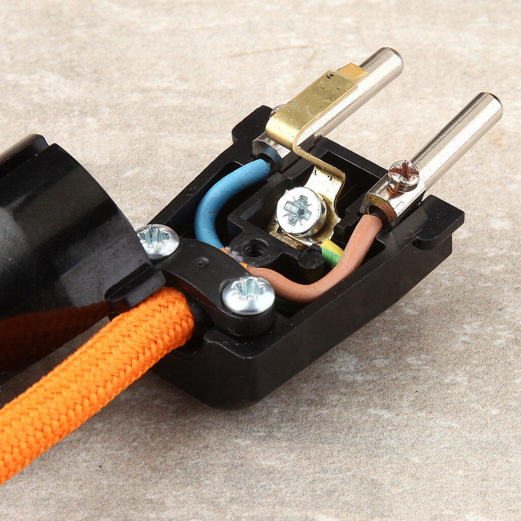 Ein Schutzkontaktstecker sorgt für sicheren Stromanschluss – vorausgesetzt, die Adern sind korrekt angeschlossen und das Kabel ist zugentlastet.