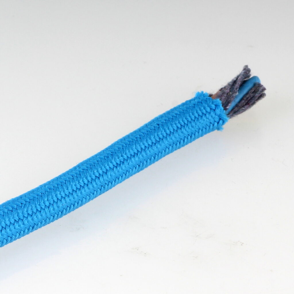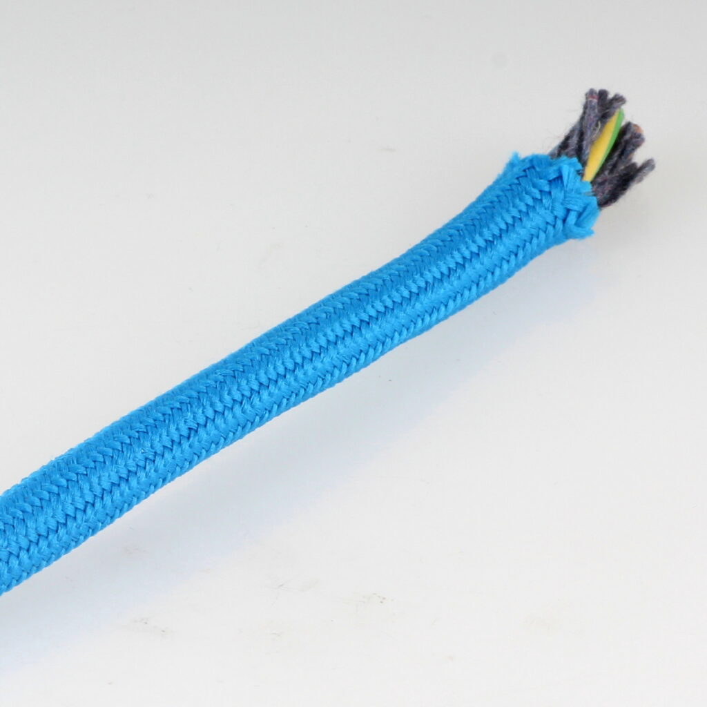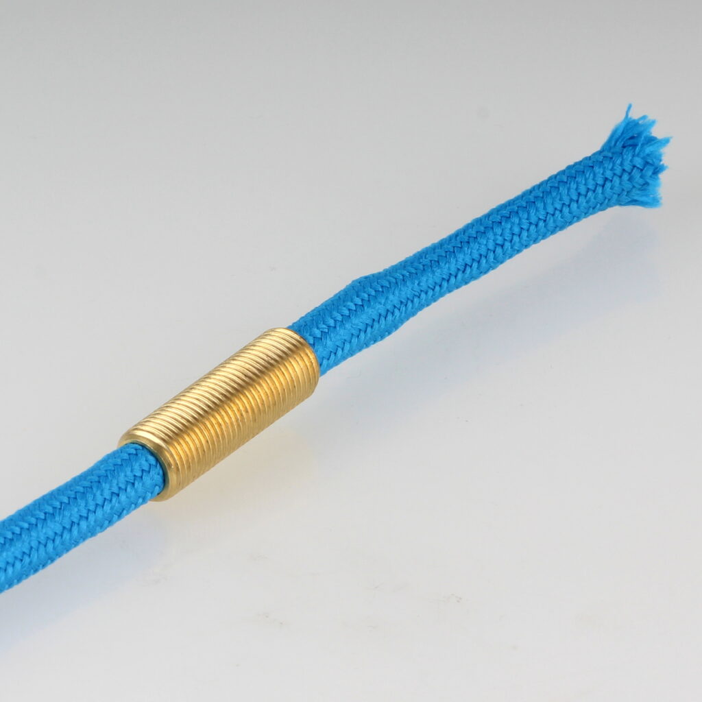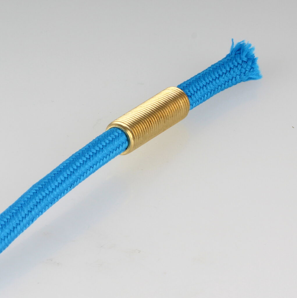 - Das vorbereitete Textilkabel lässt sich nun problemlos durch die Zugentlastung führen und anschließend für den Anschluss in der Lampenfassung weiterverarbeiten