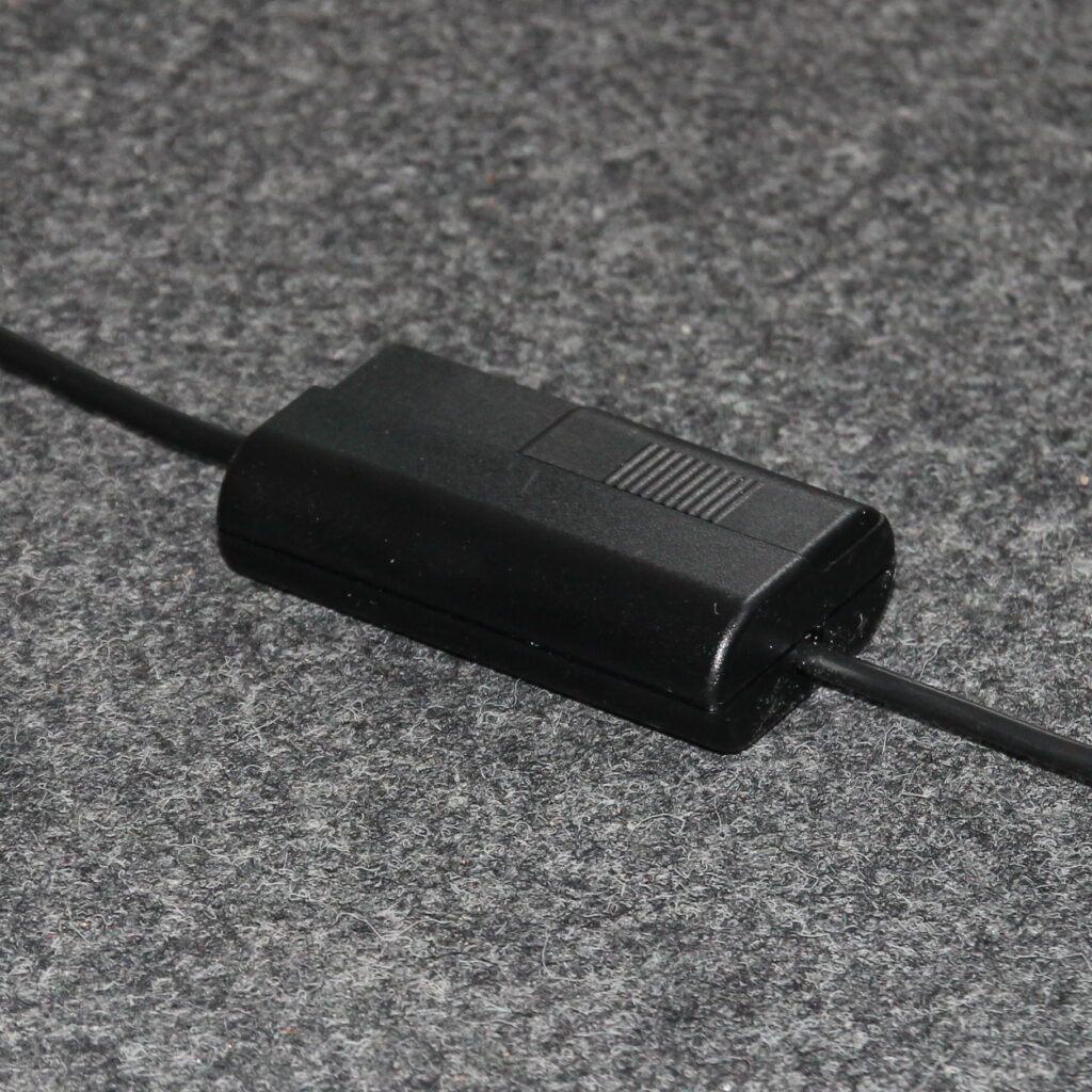 Um den R7s-Halogenstab weiterhin nutzen zu können, haben wir aus unserem Sortiment einen externen Fußdimmer (Schnurdimmer) an die Anschlussleitung montiert.