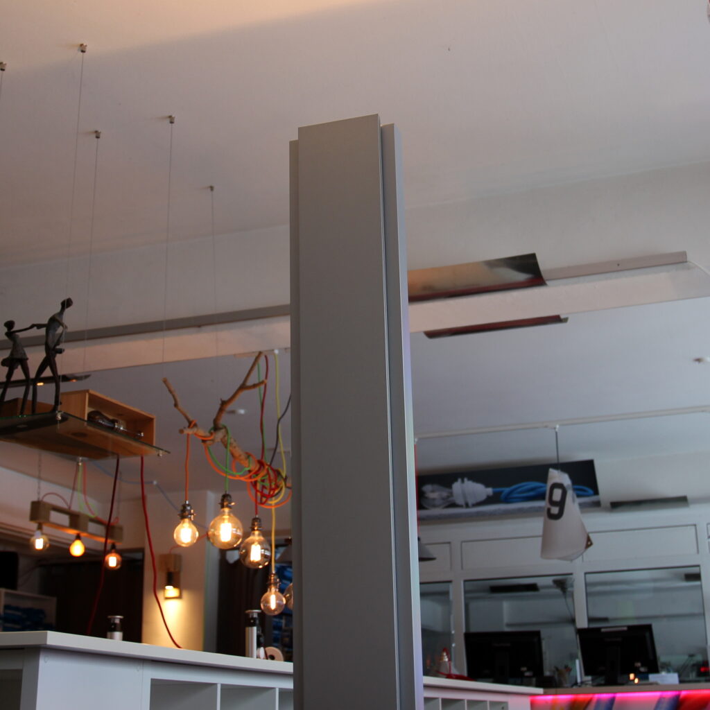 Aufgrund der hohen Lichtleistung wird der Deckenfluter nahezu immer über einen Dimmer geregelt. In diesem Fall war ein mittig angebrachter Schieberegler vorhanden, der jedoch ohne Funktion war.