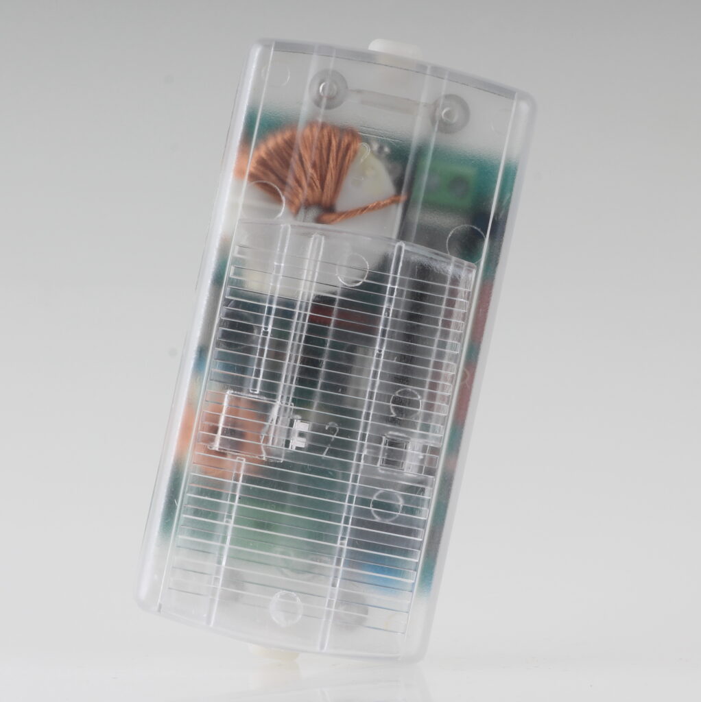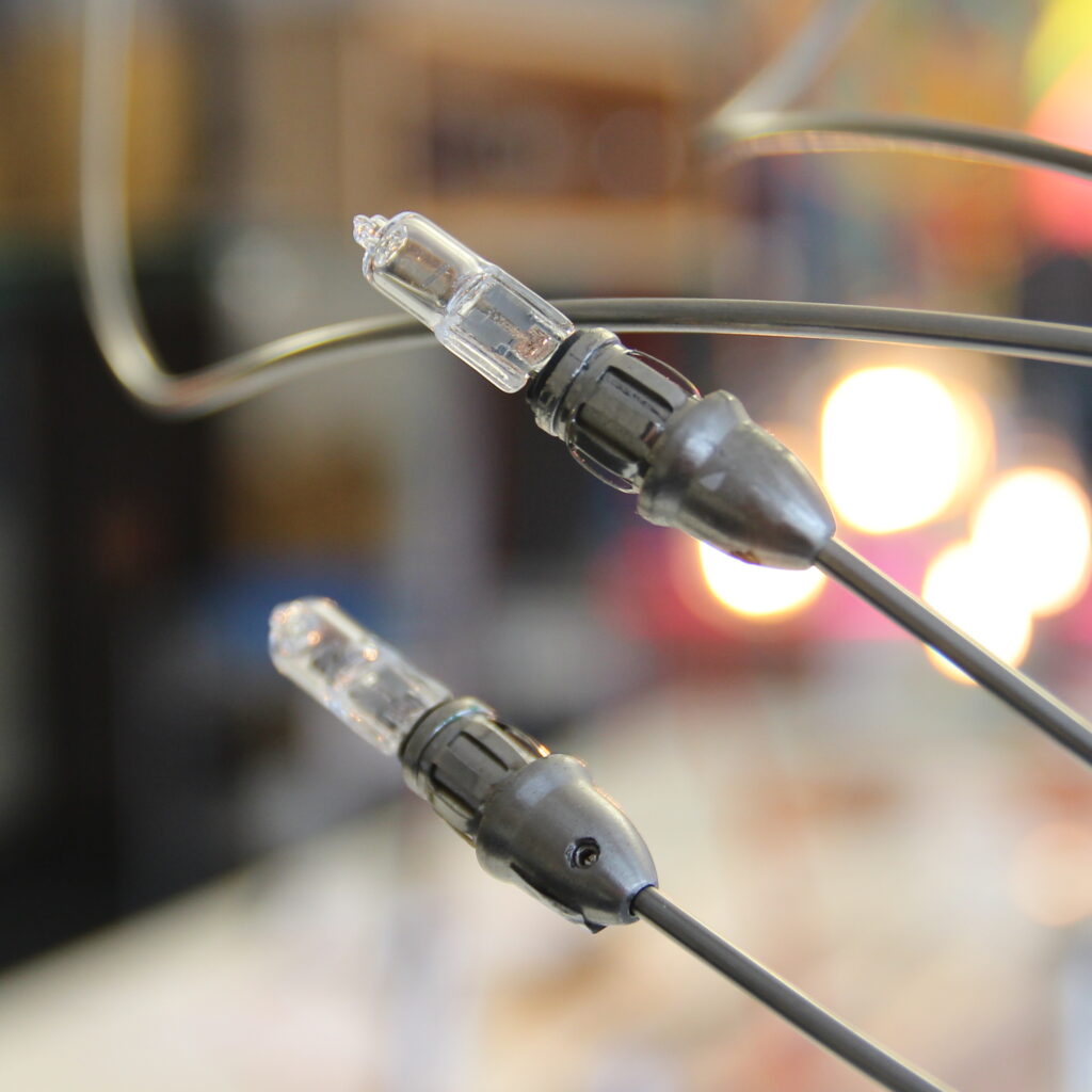 Der defekte Dimmer wurde durch einen neuen 12-V-Schnurdimmer aus unserem Ersatzteilsortiment ersetzt. Die Kundin wünschte ausdrücklich die gleiche Gehäusefarbe in transparent, um die ursprüngliche Optik der Lampe zu erhalten.