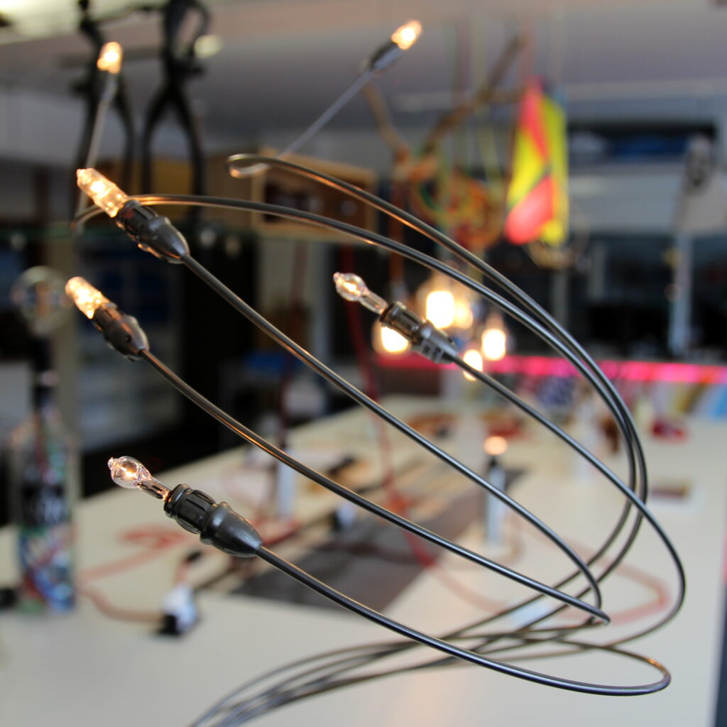 In unserem heutigen Blogbeitrag stellen wir die Reparatur einer Tischlampe mit Schnurdimmer für 12-Volt-Halogenleuchtmittel vor. Die Lampe besteht aus sechs filigranen Armen, die blumenstraußförmig angeordnet sind. Jeder Arm ist mit einer G4-Lampenfassung für 12-V-Halogenlampen ausgestattet.