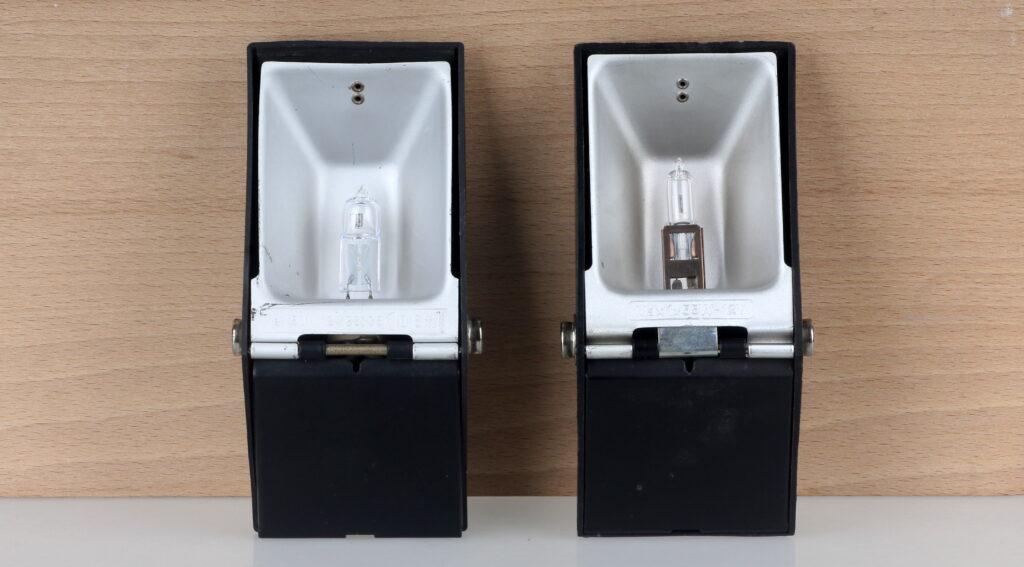 Es existieren zwei unterschiedliche Varianten mit verschiedenen Halogenleuchtmitteln.