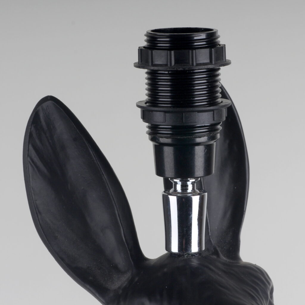 Das Kugelgelenk stellt die Verbindung zwischen Lampenfassung und dem im Inneren der Hasenfigur befindlichen Gewinderohr her.