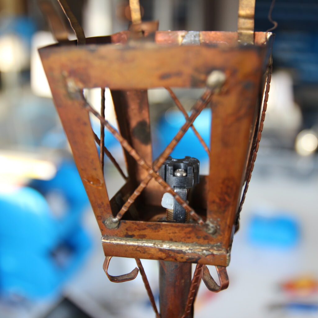Der Anlass für den Werkstattbesuch war jedoch ernst: Die elektrische Installation der Laterne sollte auf Sicherheit überprüft werden.