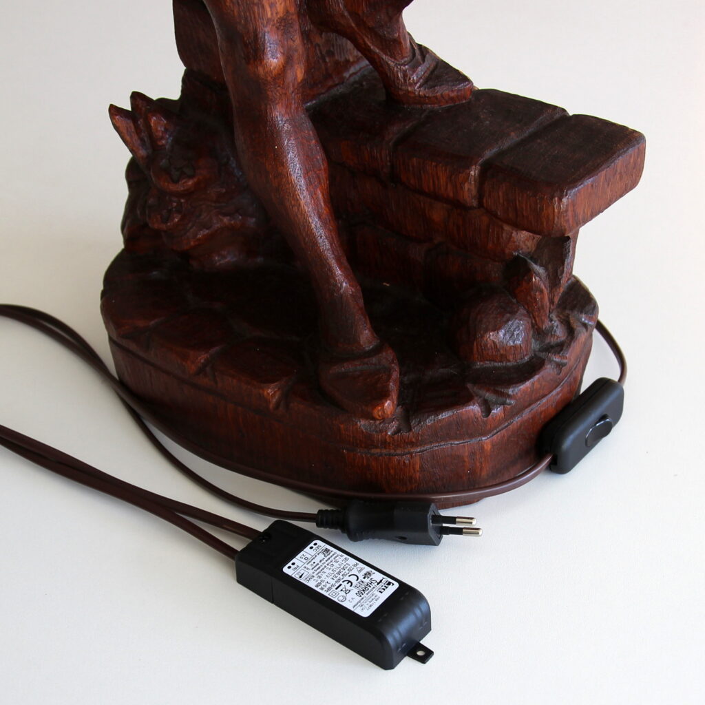 Antike Holzfigur mit Laterne repariert – Unsichere Elektrik fachgerecht erneuert