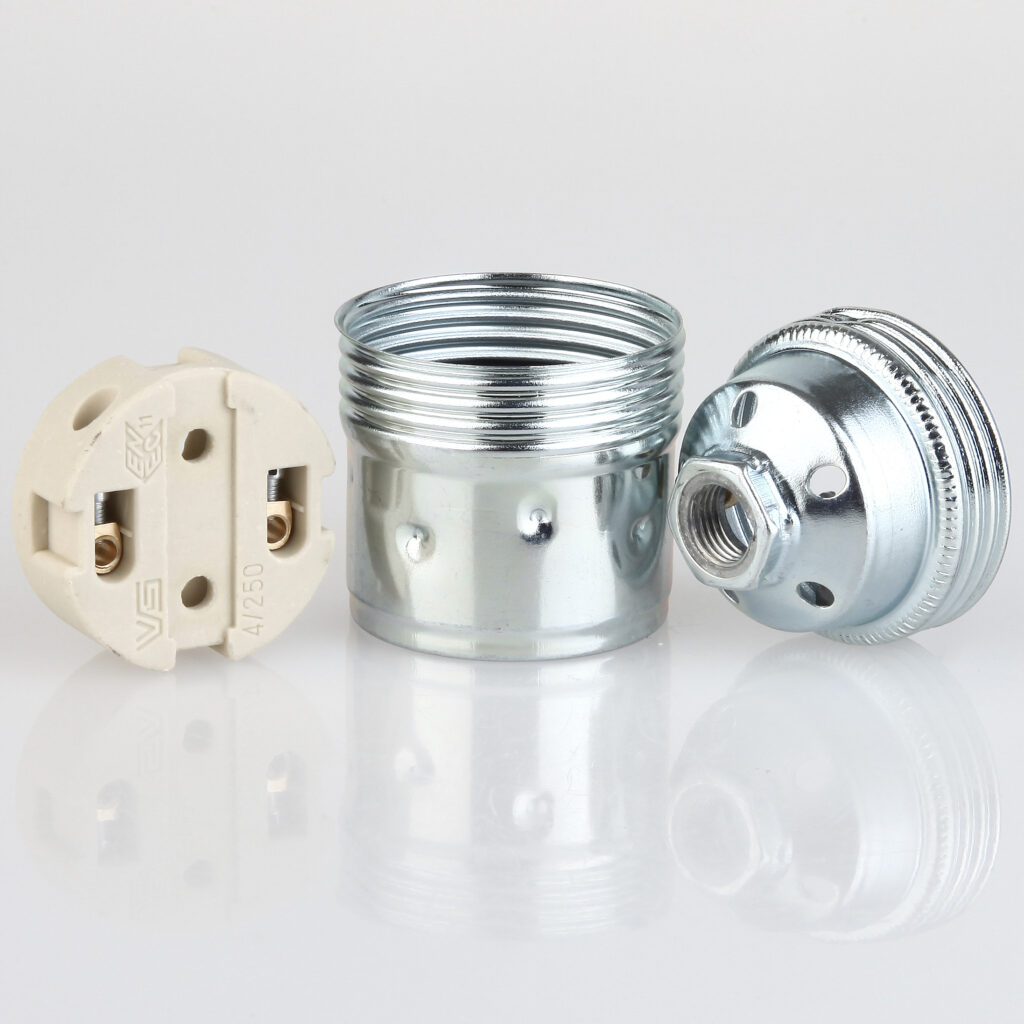 - 1 × E27 Lampenfassung Metall verchromt – Art.-Nr. 2014-1405