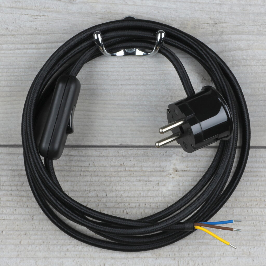 - 1 × Textilkabel Anschlussleitung mit Schnurschalter & Schutzkontakt-Stecker – Art.-Nr. 2018-5166