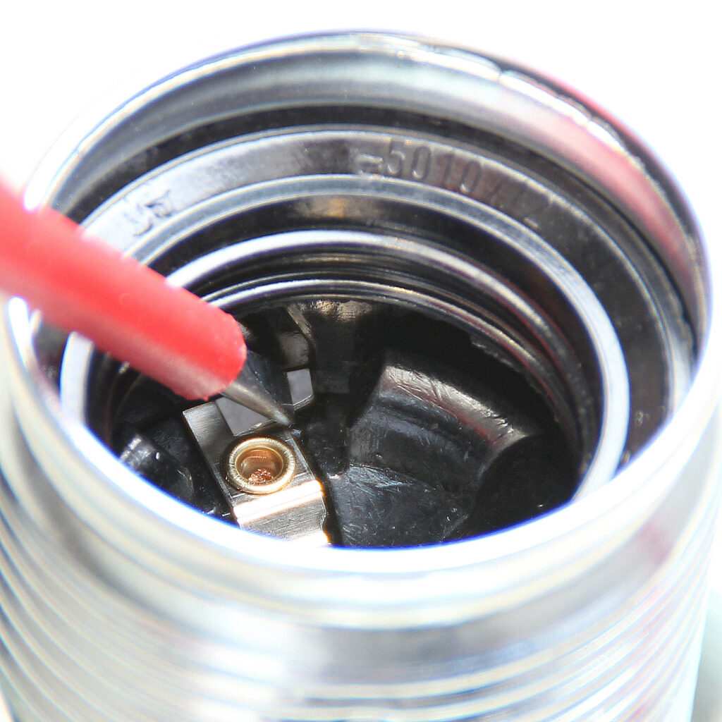 Im Inneren befindet sich ein kleines federndes Blech, das gegen den Mantel drückt.