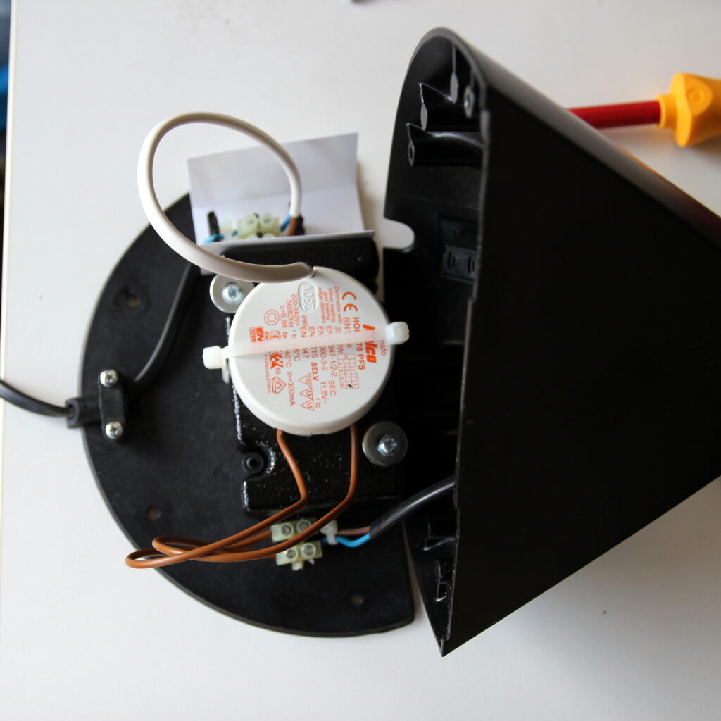 Da das eingebaute Halogenleuchtmittel mit 50 W betrieben wird, lief der Trafo dauerhaft nahe an seiner Leistungsgrenze. Bei älteren elektronischen Transformatoren führt dies häufig dazu, dass die Spannung nicht mehr stabil gehalten wird und das Leuchtmittel anfängt zu flackern.