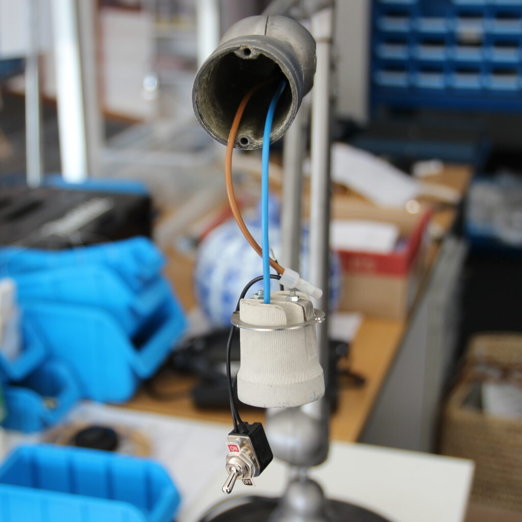 Für die sichere Instandsetzung wurde die Lampe komplett neu verkabelt.