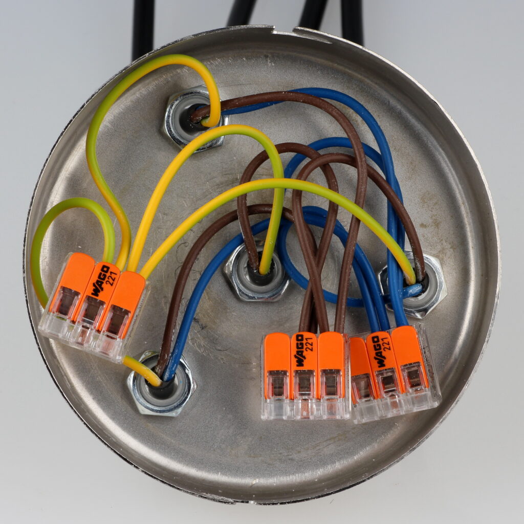 - eine Klemme für alle braunen Kabel (Phase / Leiter)