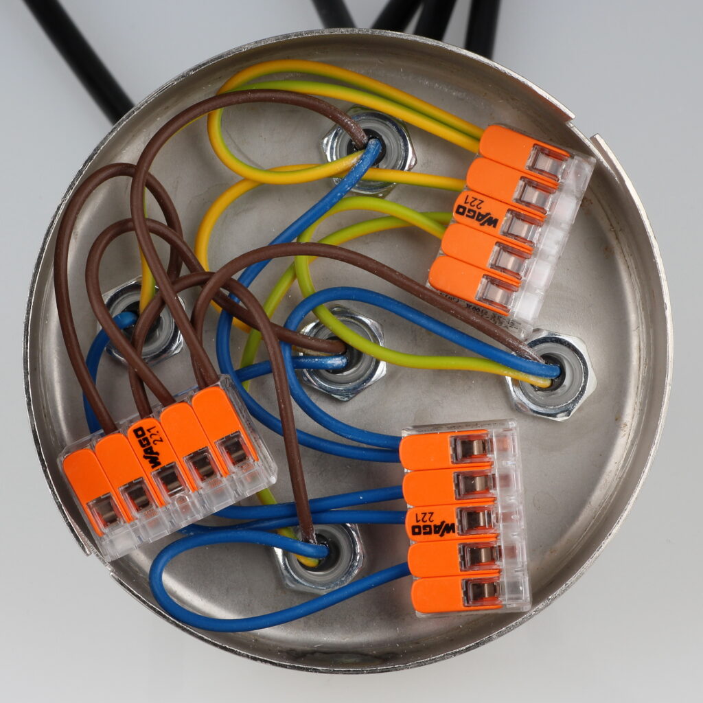 - eine Klemme für alle blauen Kabel (Neutralleiter)